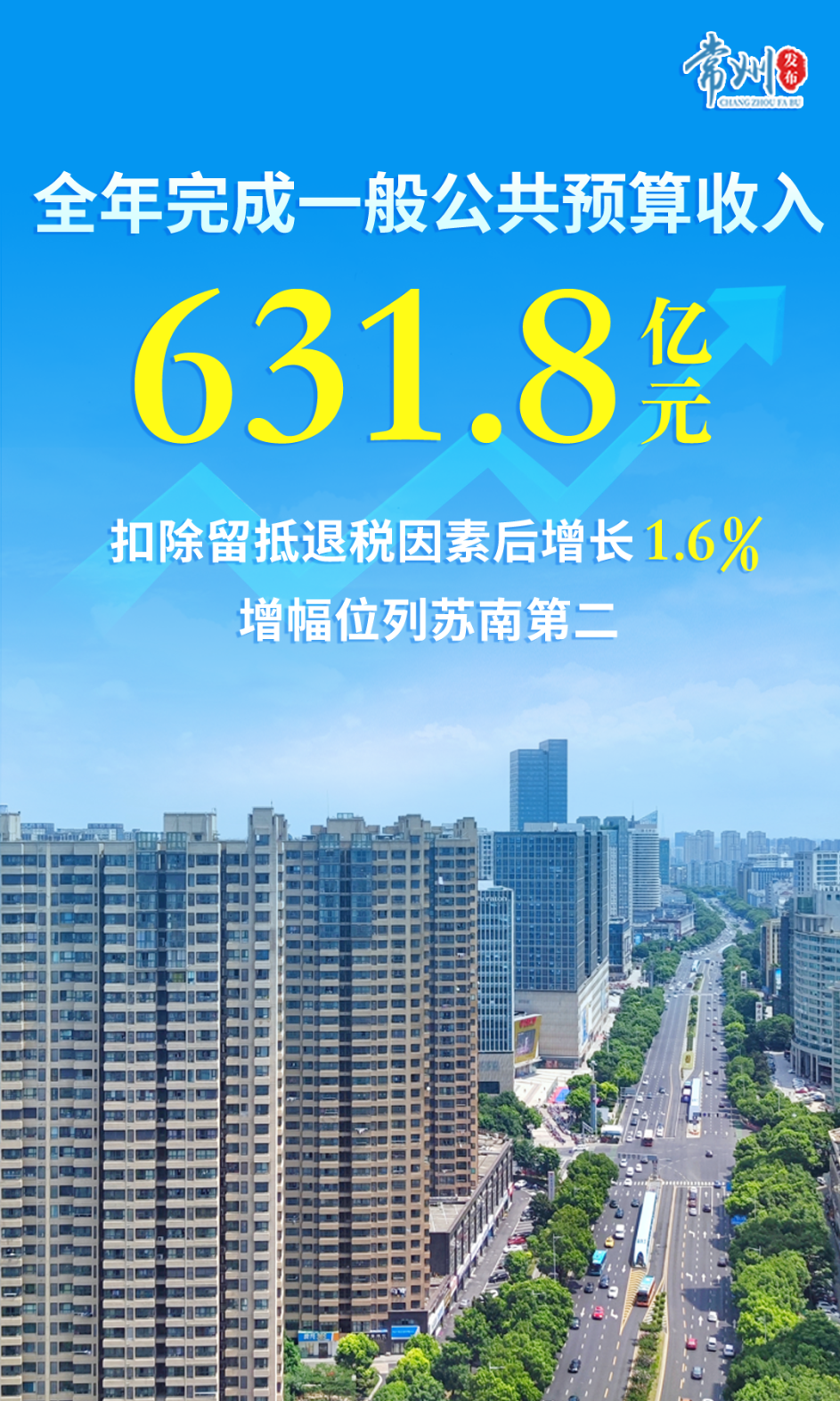 全年完成一般公共预算收入631.8亿元,扣除留抵退税因素后增长1.6%,增幅位列苏南第二;同口径税比82.2%,位列全省第三。全年一般公共预算支出规模突破800亿元,达826.1亿元,其中全市民生领域投入达636.8亿元,占一般公共预算支出比重77.1%。全年兑现增值税留抵退税191.2亿元,占一般公共预算收入比重苏南第一,惠及全市4.6万余户企业。