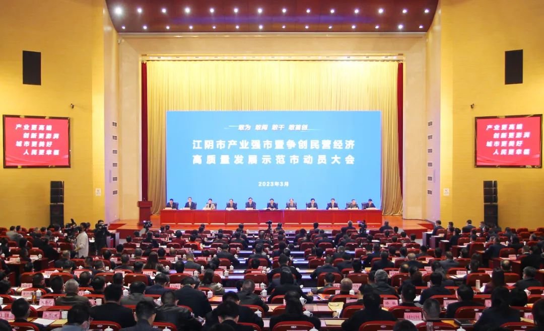 3月9日上午,江阴市委市政府以“敢为 敢闯 敢干 敢首创”为主题隆重召开江阴市产业强市暨争创民营经济高质量发展示范市动员大会。