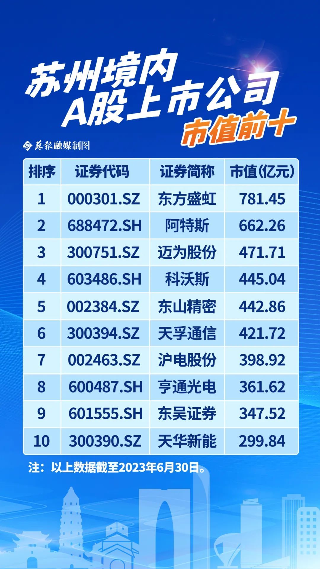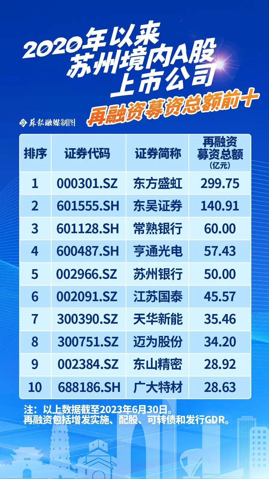 今天上午召开的2023苏州数字金融大会发布了苏州境内A股上市公司市值前十、苏州境内A股上市公司2023年半年度营业收入前十、苏州境内A股上市公司2023年半年度研发支出前十、2020年以来苏州境内A股上市公司再融资募资总额前十榜单。