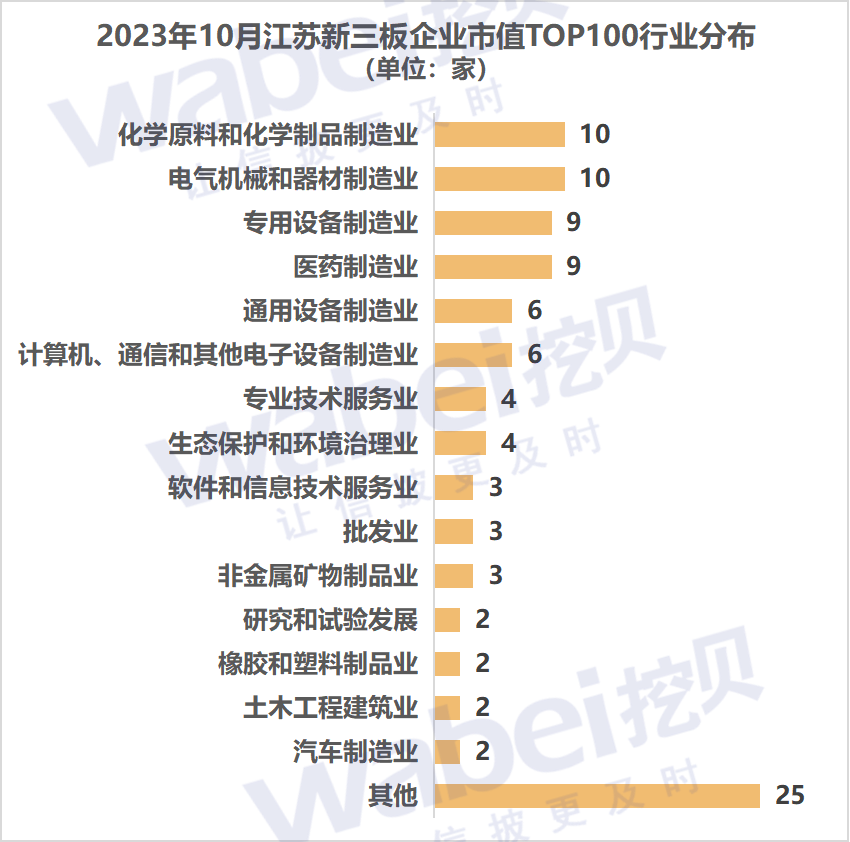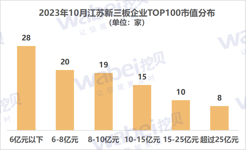 挖贝研究院梳理出2023年10月江苏新三板企业市值TOP100(以下简称:“榜单”或“TOP100”),8家企业市值超过25亿元,29家企业冲击北交所。