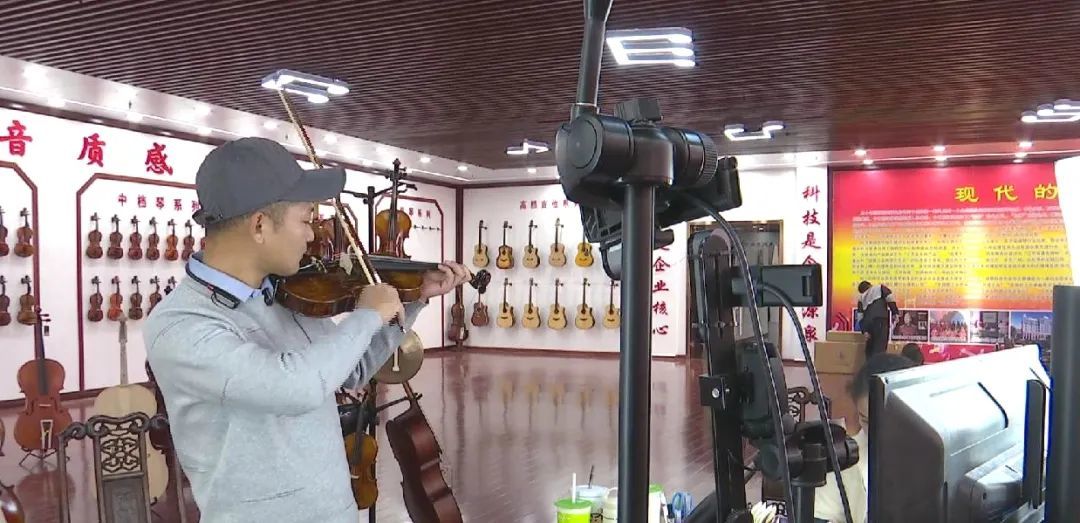 在黄桥镇江苏凤灵乐器集团,主播何佳兵正利用线上直播间讲解小提琴加工工艺和文化起源。在1小时左右的直播时间里,不少网友纷纷选购心仪的产品。今年10月,凤灵乐器开通了网络直播平台,拉近了跟客户的距离,让客户选琴买琴时更有体验感,大大提高了客户下单转化率。江苏凤灵乐器集团创办于1968年,年产各类提琴产品30万套、吉他产品60多万套,达世界提琴总量的百分之30以上。凤灵乐器锚准新的发展方向,结合音乐交流、小提琴文化等,开辟新途径、促进企业转型升级。
