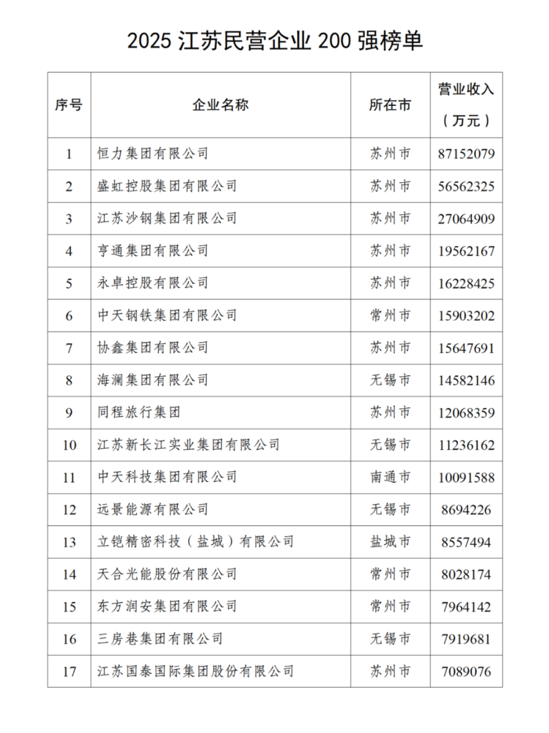 2025江苏民营企业200强的整体规模持续扩张。入围门槛比上年增加1.89亿元,平均营业额为392.3亿元,较上年增长3.24%。