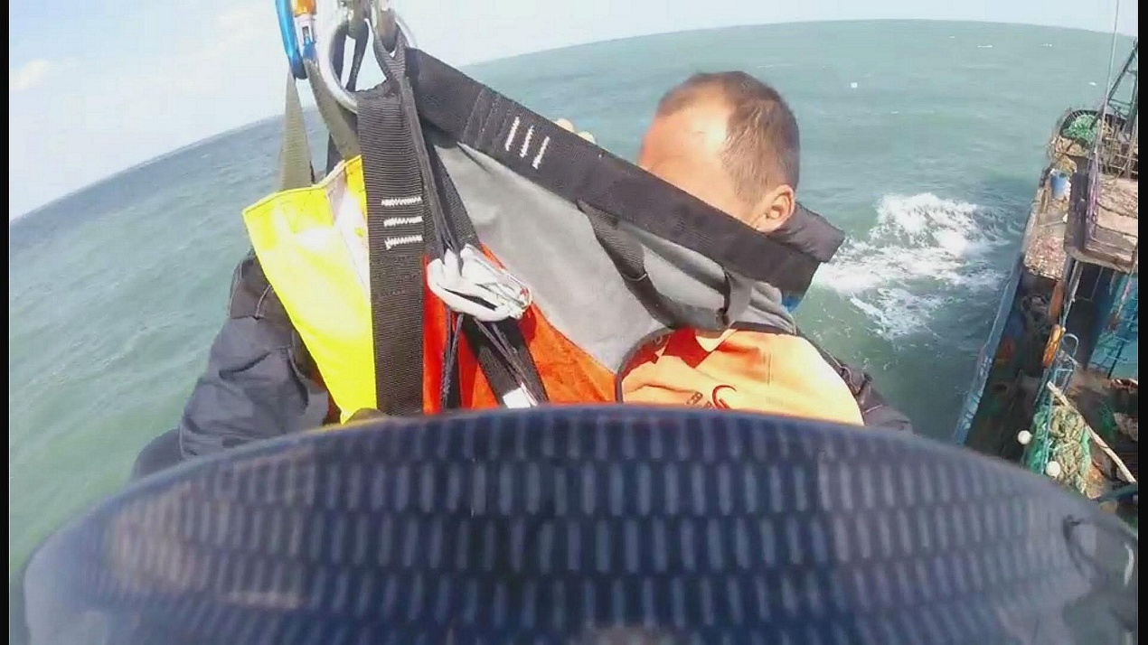 10月24日上午,一艘在距离盐城市射阳港90多海里的海面上捕捞作业的山东籍渔船上,有一个渔民被铁器击中头部受伤,神志不清,急需送到医院救治。接到求助警情,盐城海上搜救中心、交通运输部东海救助局第一救助飞行队和射阳120急救中心等部门联手,快速展开救援工作。
