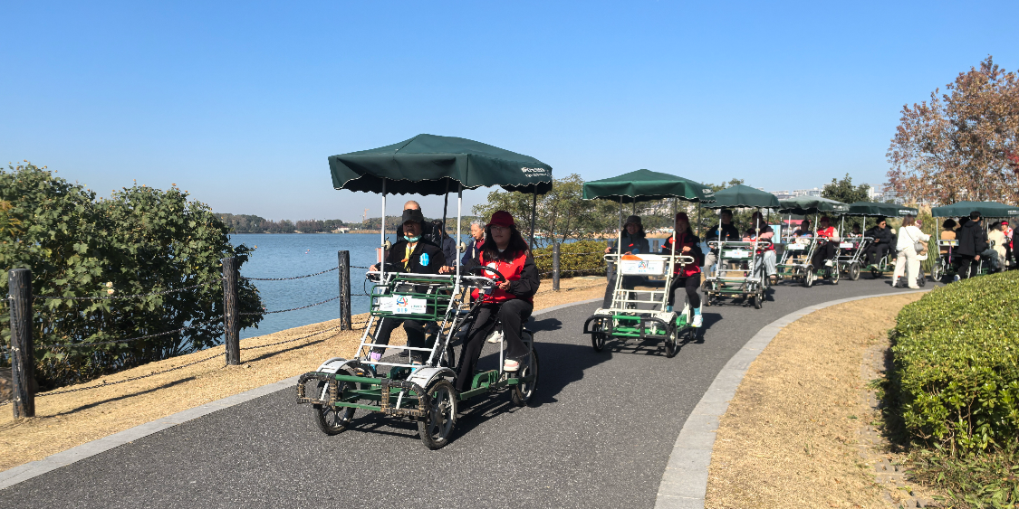 11月29日,苏州虎丘湿地公园薄雾轻笼,一声清脆的发令哨划破寂静——“点亮视界·志骑同行”视障公益骑行在这里启程。50名视力障碍者在50名“声音领航”志愿者的一对一陪伴下,骑行在3公里湿地绿道,用耳聆听风声,用心“看见”世界。活动现场,苏州市体育局、市社会体育指导员协会、苏州高新区(虎丘区)高盛公益事业发展中心、苏州市小红帽义工协会相关负责人共同为活动鸣笛,百余位市民沿途加油,共同见证苏州体育惠民“五进工程”的又一次温暖落地。