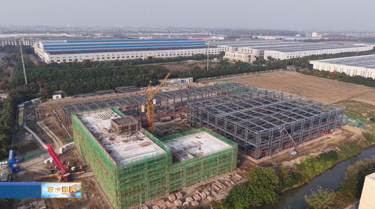 工地上,研发楼与综合楼已完成主体封顶,整体轮廓初步显现;两座大型车间的地基和设备基础也已施工完毕,正式转入钢结构安装阶段。整个施工现场井然有序,近200名建设者奋战一线,全力保障工程高效推进。
