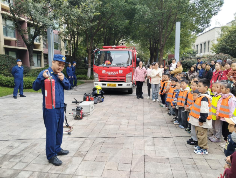 另一边,吉山软件园幼儿园的孩子们围着消防车欢呼雀跃,零距离接触消防、体验消防,眼睛里满是崇拜。“火警电话是多少?”“发生火灾要往哪里跑?”孩子们就争先恐后地参与有奖竞答活动,现场气氛热烈。