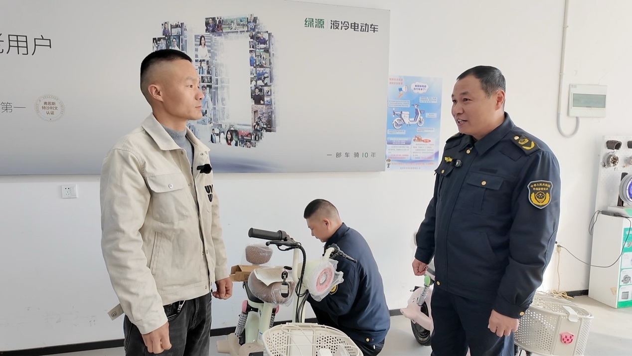 每到一家店铺,市场监管人员都会仔细检查车辆合格证二维码与车辆、电池、充电器编码是否一致,车辆是否取得了3C认证,并张贴宣传海报,向商家普及查验知识。栖霞区市场监管局质量管理科科长许小兵向经营者强调:“变化比较大的就是安全性能的提升,通过材料阻燃、身份追溯、技术管控等多维度提升安全门槛。充电器与电池需协议匹配才能充电。如果没有协议匹配,消费者把车买回家大概率就会充不上电,影响到正常使用。”