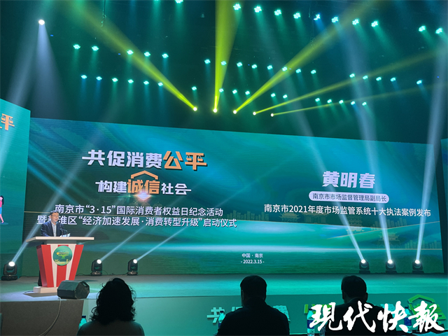 2022年3月15日,第40个“国际消费者权益日”,当天,南京市消协组织围绕中消协“共促消费公平”消费维权年主题,筹备了系列宣传、教育和服务类活动。现场,发布了2021年度南京市市场监管系统十大执法案例。