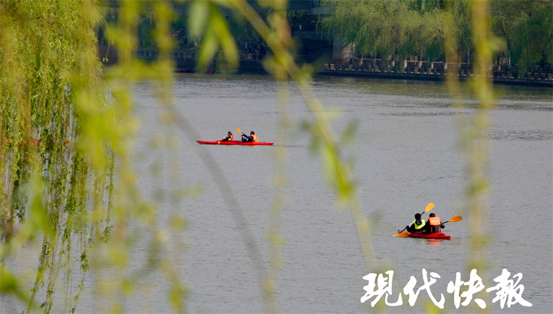 大多数都是一家老小一起出动。在秦淮河边,人们找块绿地搭起五彩的帐篷,在绿荫下骑车,在暖阳下放风筝,在亭子里下棋聊天……水上运动也很受欢迎,不少家庭、朋友三四人人一组,挥舞着船桨,在水面上荡漾。“昨天我们一家搭帐篷,在户外玩了一下午,今天就来玩皮划艇了。”市民张先生说。