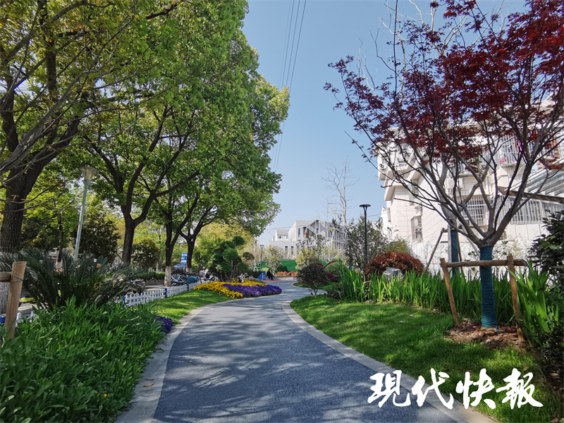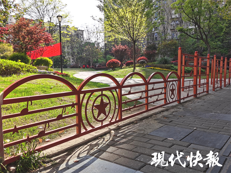 修剪整齐的灌木、曲径通幽的步道、随处可见的长凳……在建邺区的纪念馆东路口袋公园,几名市民正在悠闲地散步。