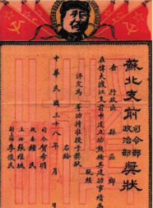 苏北支前司令部、政治部奖状