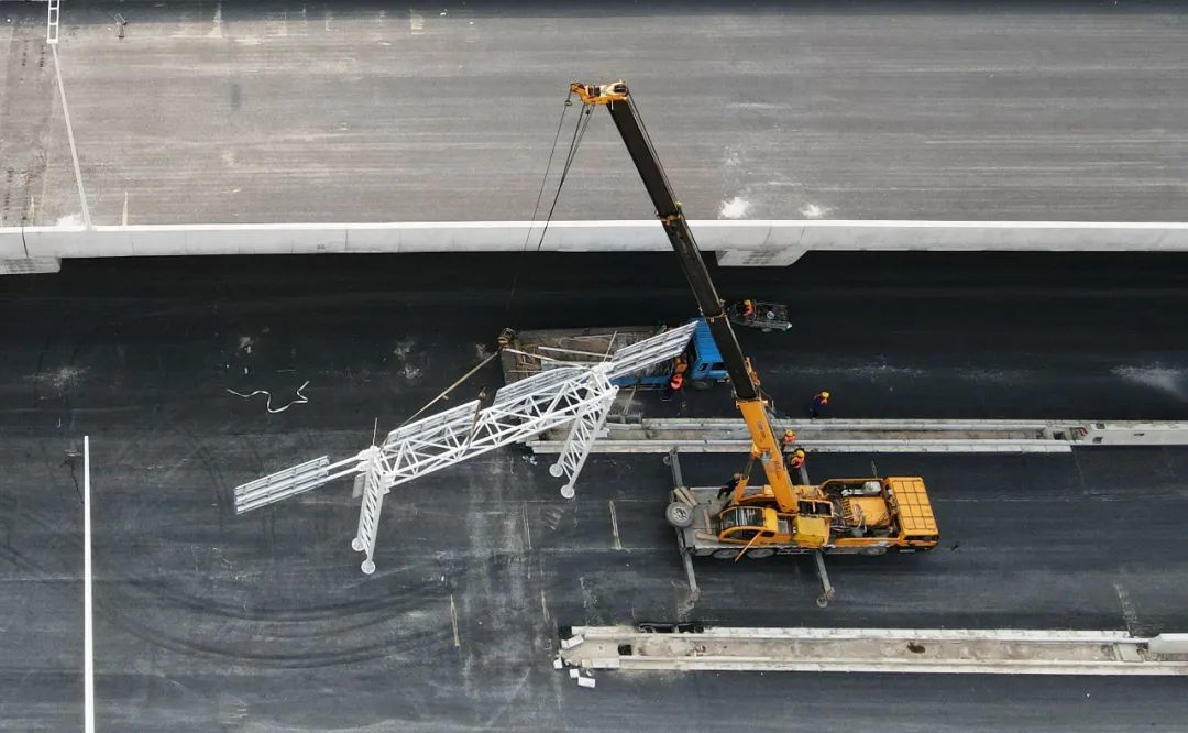 同时,道路工程路基土石方工程已完成,正在进行路面结构层、人行道、机电等附属工程施工。