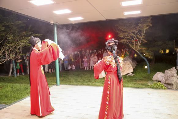 文学客厅的庭院剧场中上演了折子戏《桃花扇·洞房》《梁祝·十八相送》。优美的唱腔、经典的片段,让不少票友陶醉其中,演员们精彩的表演引来阵阵掌声。市民们纷纷表示,在文学的起源地来欣赏戏剧中的爱情传奇,这份体验很美妙。刘女士是一个“文学爱好者”,也是喜欢看戏,这次知道文学客厅举办“520之夜”活动,就和爱人一起来参加。“《桃花扇》这个故事发生在南京,在文学发源地听上一出和南京相关的戏曲,‘文学之都’古老的文脉气息扑面而来。”她兴奋地告诉记者。