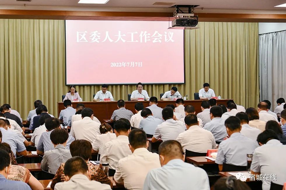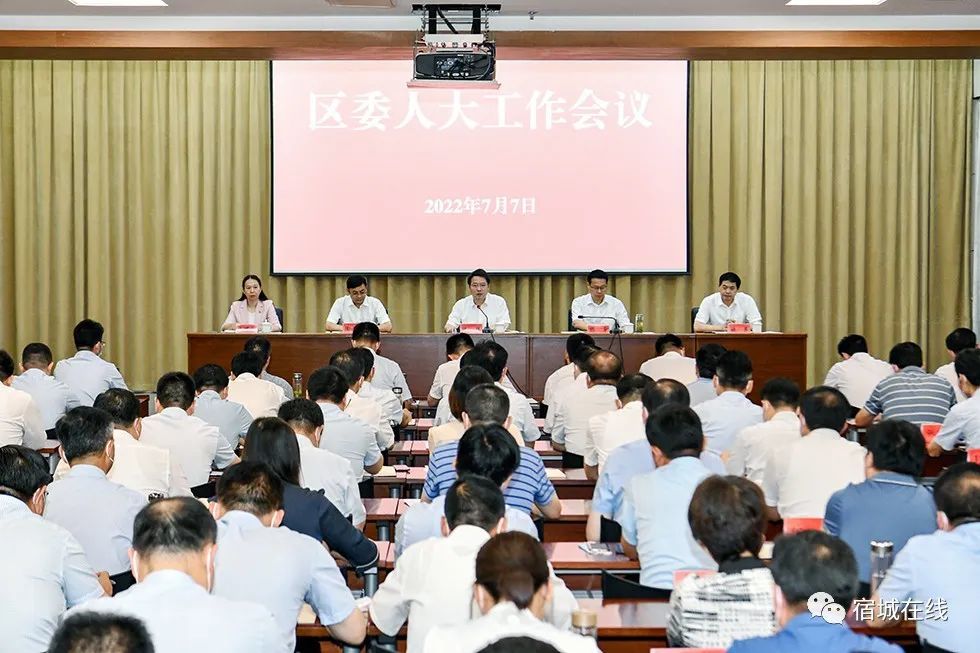 7月7日,宿迁宿城区委人大工作会议召开。宿城区委书记陈伟强调,要深入贯彻落实中央和省委、市委人大工作会议精神,进一步加强和改进新时代人大工作,全面开创新时代宿城人大工作新局面,以实际行动迎接党的二十大胜利召开。区委副书记、区长顾宇主持会议。