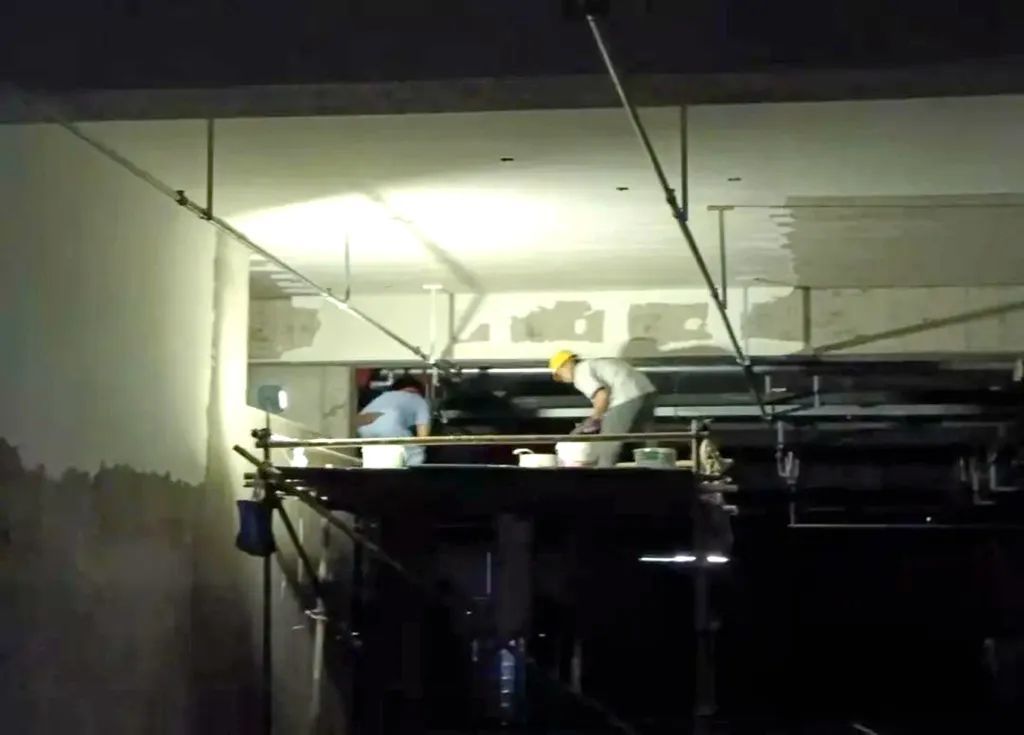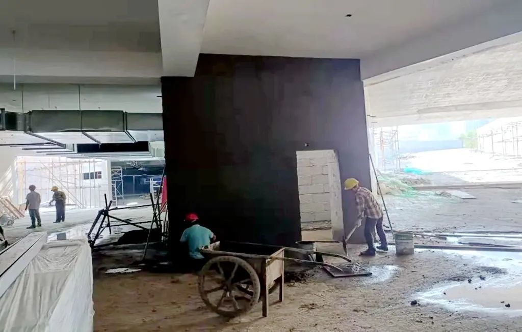 正在对内部墙体进行施工