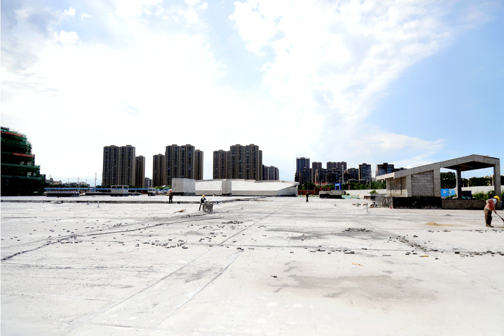 整个广场的建设分为西区和东区,目前,东侧停车场已经完成总工程量的67%。