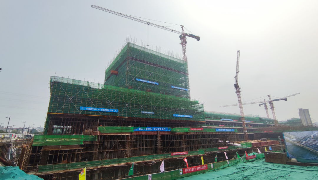 截至目前,项目中的6栋楼已实现提前封顶,除A1、A7等作业区地上主体结构施工外,A6作业区正进行地下部分基础施工,基本符合序时进度要求。