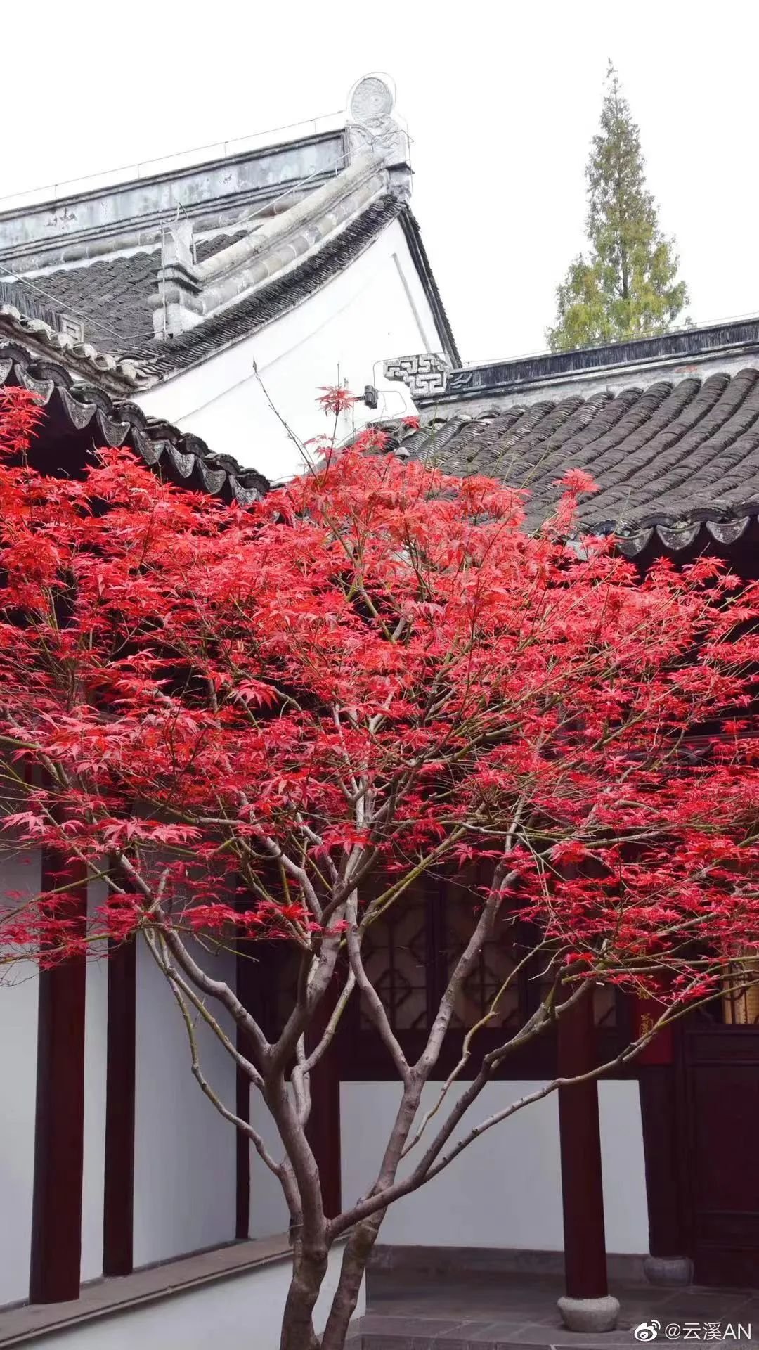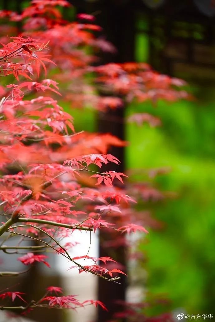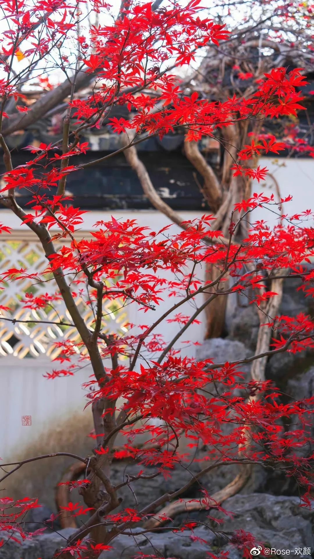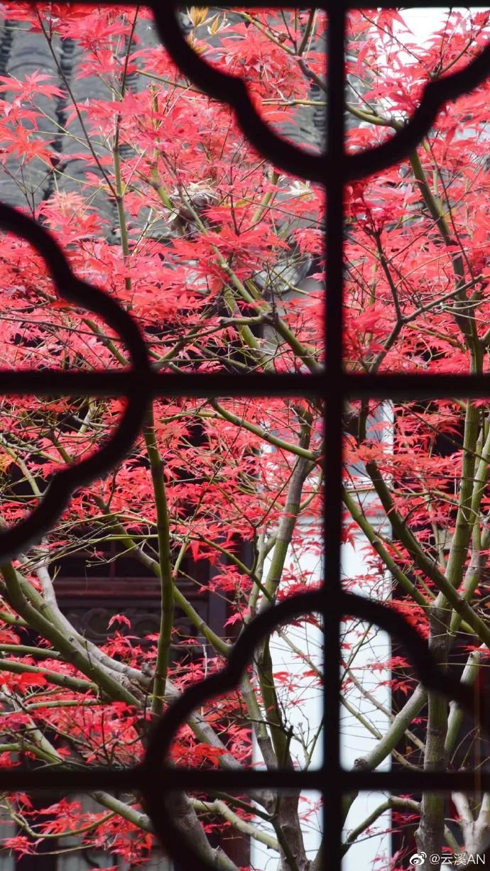 红彤彤的枫叶一簇一簇,那么鲜艳又精致。红窗、白墙、黑瓦……是最佳的取景点,搭配上火红的枫叶,信手一拍,都意境十足。