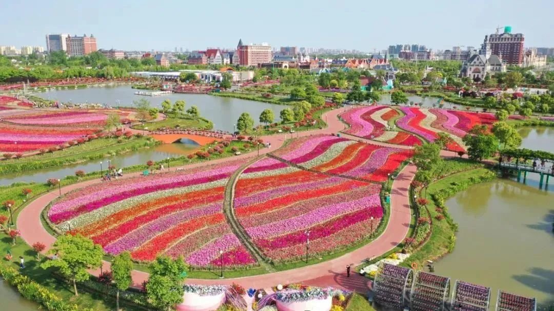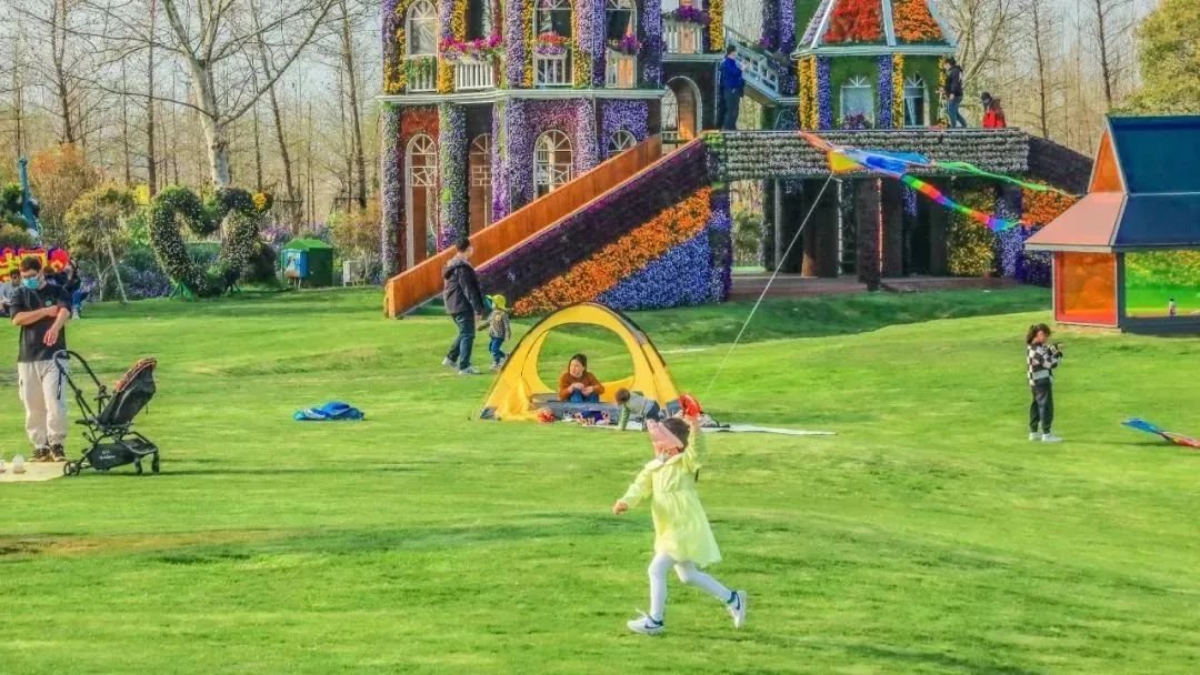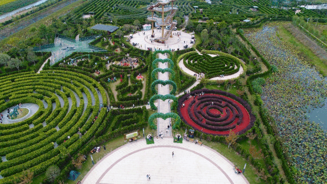 在旋转观景塔上远眺能一览整片花海,充满童话色彩又妙趣横生。