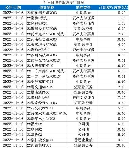 这并非个案,近期信用债取消发行的案例大幅增加。再如11月14日,陕西交通控股集团有限公司发布公告称,由于近期市场波动较大,公司决定取消发行“22陕西交通MTN008”,具体发行时间另行确定。