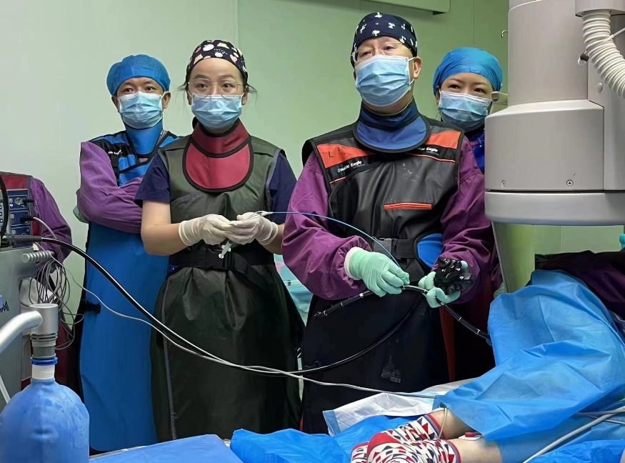 刘政主任带领团队一起在内镜下找到直径仅6毫米的阑尾开口,通过导丝等器械辅助,将小花生米大小的粪石从阑尾顺利取出,并同时清理了出了不少粪石残渣,成功保留住了阑尾。手术结束后,高女士的腹痛症状立即缓解,当天就活动自如,第二天可以进食,一天抗炎治疗后康复出院。