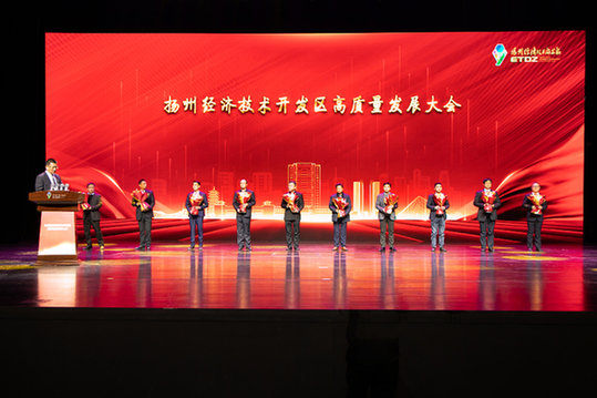 12月16日下午,扬州经济技术开发区召开高质量发展大会,回顾总结该区三十年发展历程,表彰了一批为经开区高质量发展做出突出贡献的企业、工匠、公仆和改革先锋。