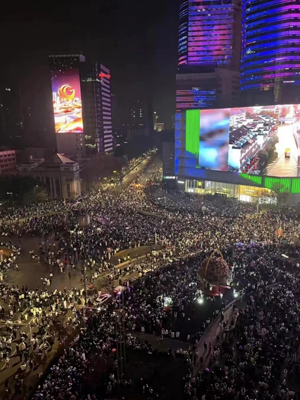 虽然此刻正值寒冬,但市民的热情丝毫不减,大家纷纷举起手机,记录下这辞旧迎新的时刻,并发送朋友圈将欢喜传递,共同见证、共同拥抱新的一年。
