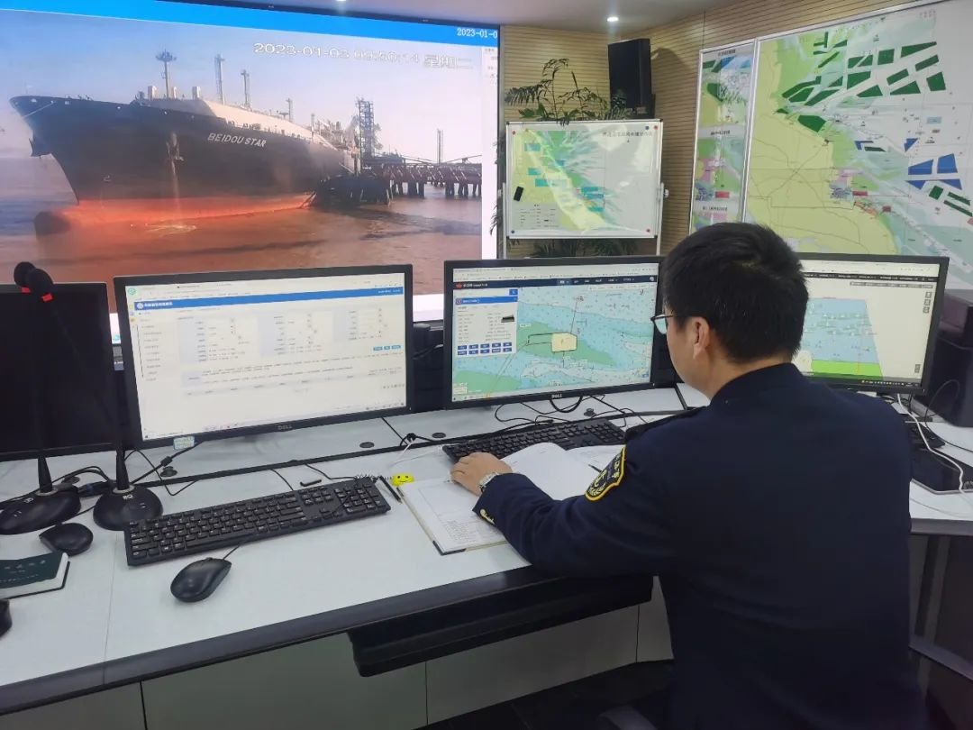 船舶进出港期间,调配海巡艇、加派执法人员护航,综合运用VTS、AIS、CCTV等信息化系统强化远程指挥、调度、监控。船舶靠泊期间,不定期对维护拖轮值守情况进行抽查检查,提醒船方随时注意潮汐、水流、风向情况,及时检查靠泊期间缆绳张力。