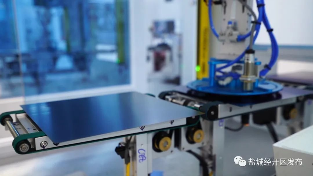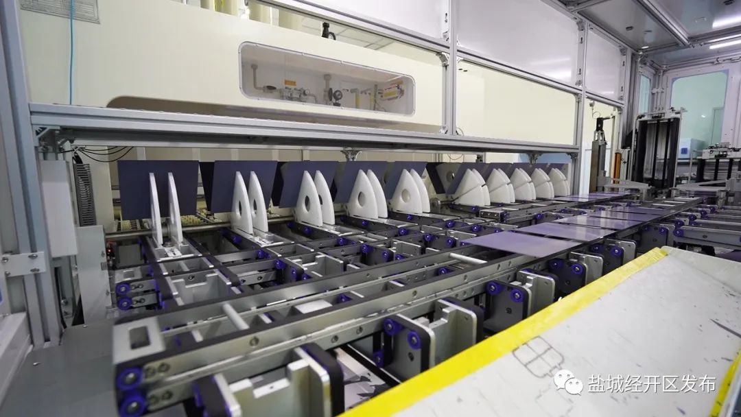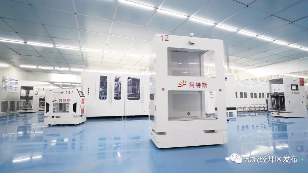 在盐城阿特斯阳光能源科技有限公司二期5.5GW高效电池车间,新安装完成的设备已经全部投入试生产,一片片高效晶硅光伏电池产品陆续在智能无人生产线上完成。