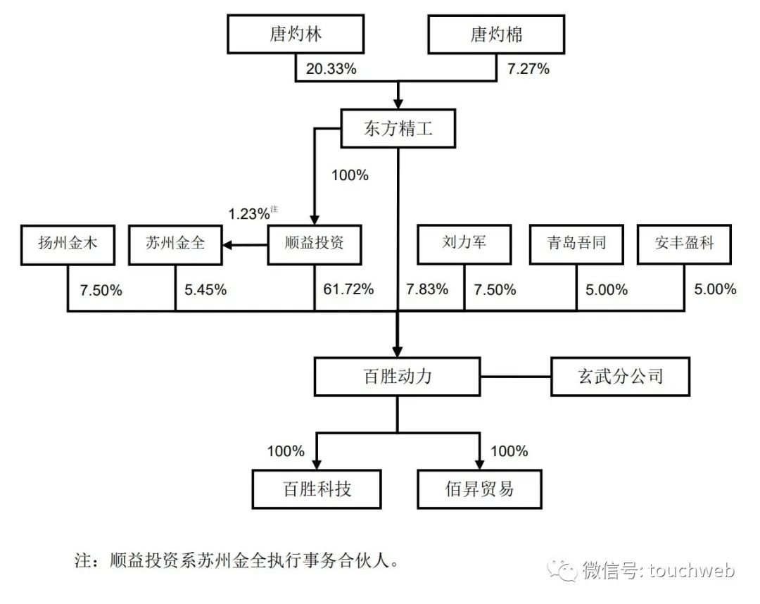 百胜动力的公司控股股东为顺益投资,间接控股股东为东方精工,实际控制人为唐灼林和唐灼棉。