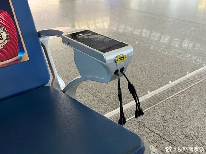 1月19日12时许,@铁路南京站 发微博称车站摆放了充电座椅,同时还设有智能手机充电平台,供旅客应急充电使用。