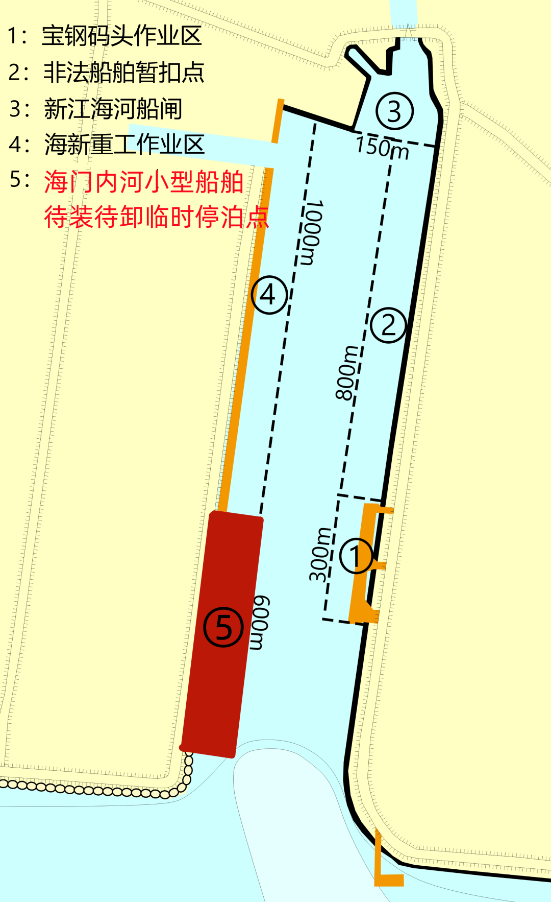 3.拟靠宝钢物流(江苏)有限公司码头、江苏海新船务重工有限公司码头作业的大型船舶(船舶长度大于80米),不得在临时停泊区或港池其他水域随意锚泊。