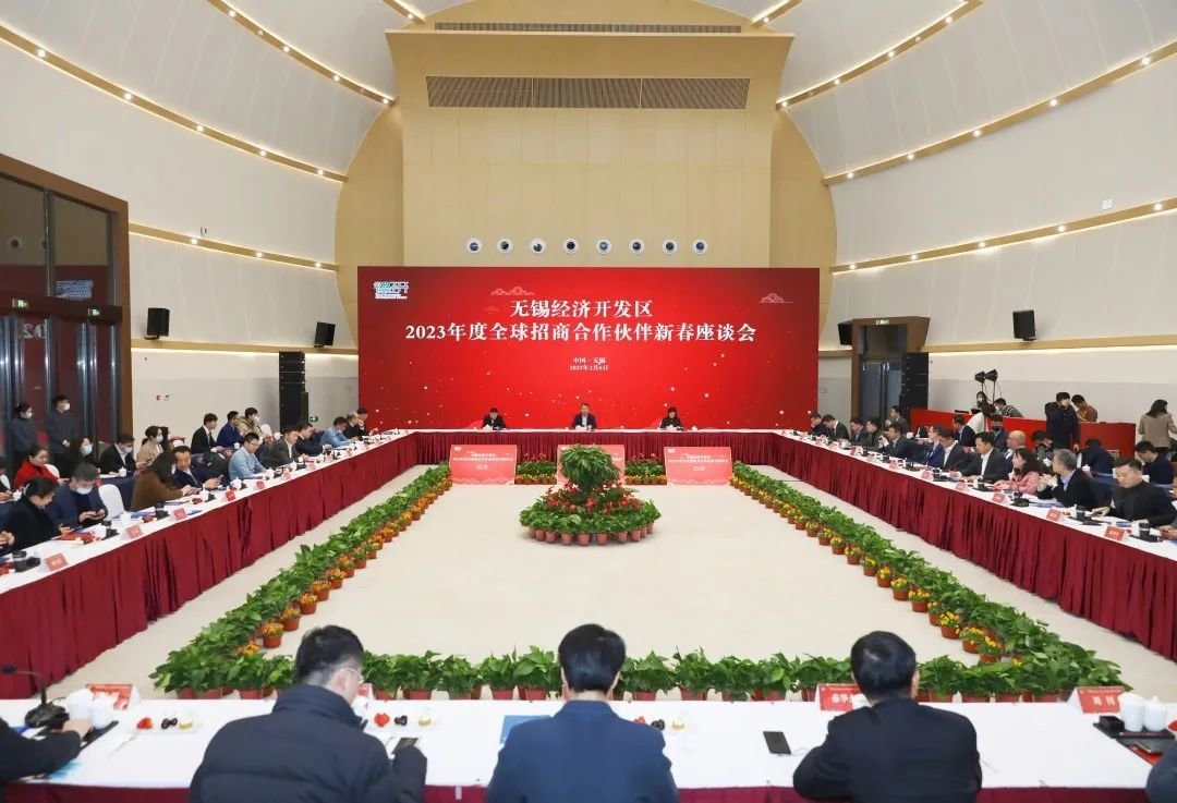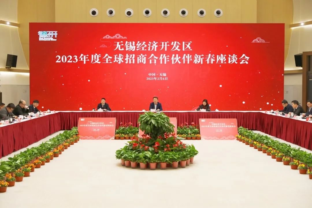 2月6日,无锡经开区召开2023年全球招商合作伙伴新春座谈会,与来自五大行四大所、商协会、外资银行、驻华机构、科研院所的招商伙伴们齐聚一堂,畅谈美好明天、共商发展大计,号召招商伙伴们在新的一年继续深度投资经开区,不断帮助经开区扩大全球“朋友圈”。