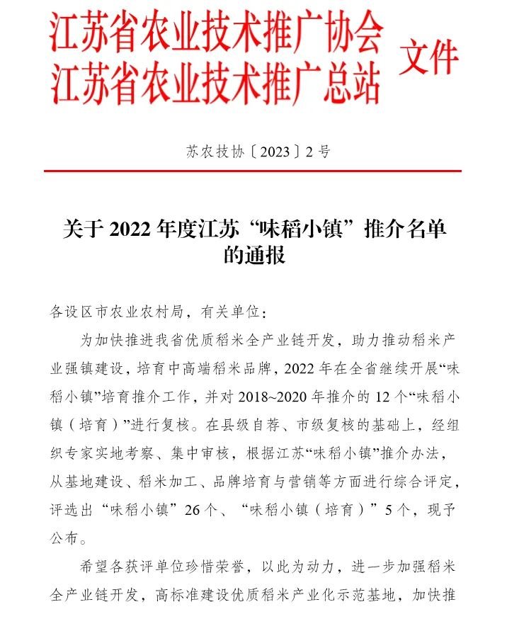原标题:省级认证!宿豫再添一个“味稻小镇”