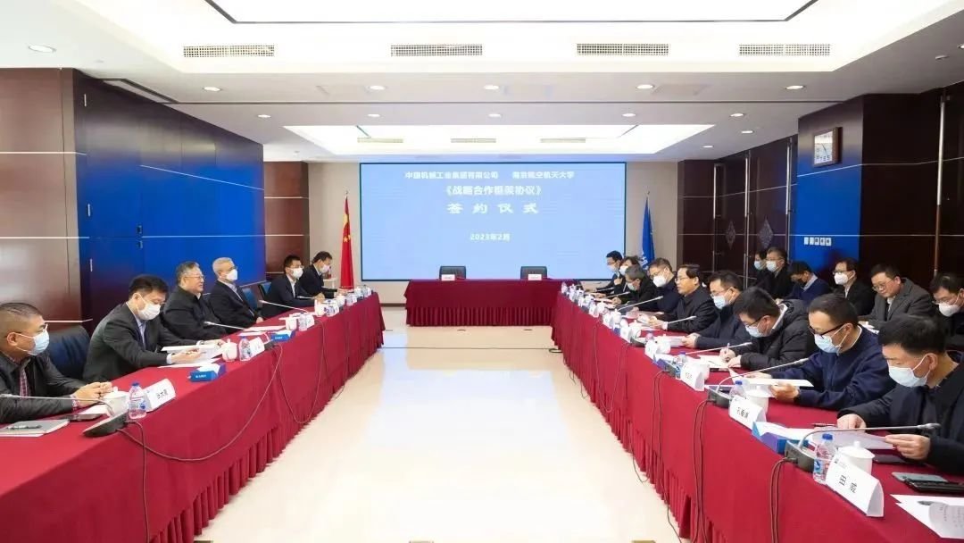 2月16日,南京航空航天大学与中国机械工业集团有限公司(简称国机集团)在北京签署战略合作框架协议。国机集团党委书记、董事长张晓仑,副总经理黎晓煜,南京航空航天大学校长、中国工程院院士单忠德,副校长宋迎东出席签约仪式。