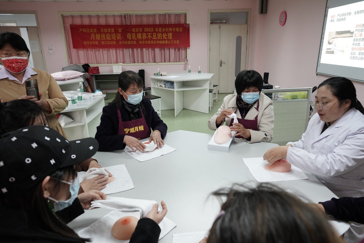 南京市秦淮区钟晓敏爱心工作室负责该项目具体运作。工作室首先筛选了一批具有一定思想觉悟、乐于奉献,愿意将一技之长,无私传授给更多新手的“老月嫂”,作为“乡村种子”。然后,了解她们的需求,整合资源为她们赋能,提升她们的自我认知、突破成长瓶颈,让她们与时俱进,在不断学习修炼重获得蜕变。