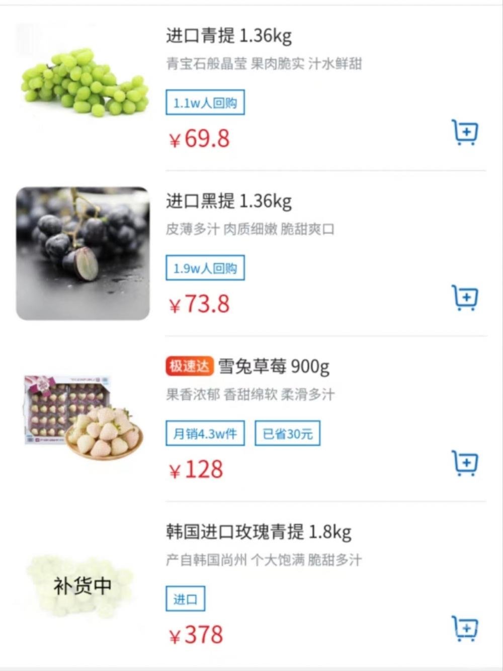 上游新闻记者也注意到,目前市场也有秘鲁进口青提和国产青提,价格相对来说便宜很多,其中国产青提也就是大家所熟知的“阳光玫瑰”。