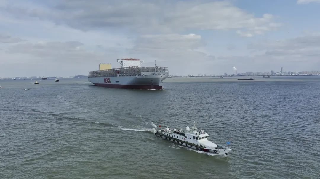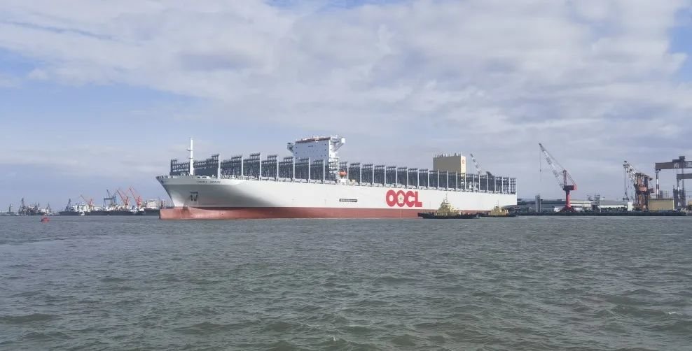 2月21日,由南通中远海运川崎船舶工程有限公司制造的世界上最大级别24000TEU“OOCL SPAIN”(东方西班牙)轮,在南通、常熟、太仓三地海事部门的精心护航下,顺利离开长江江苏段出江试航。