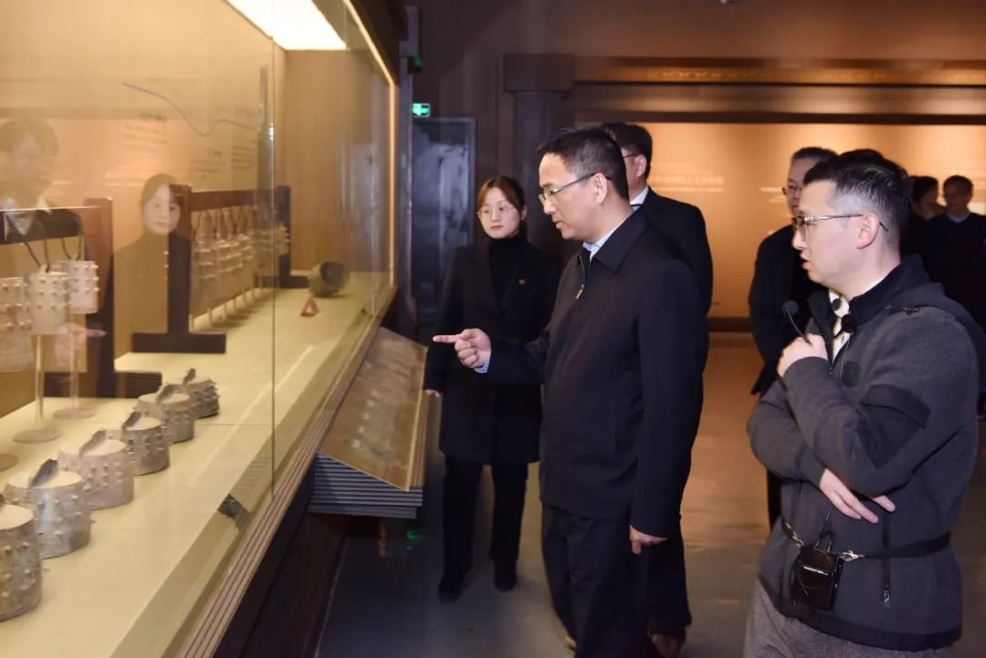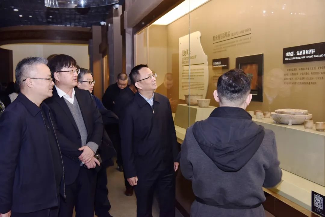 在鸿山遗址博物馆,唐炜参观了鸿山遗址出土文物展,了解了鸿山遗址发掘情况,并指出,鸿山遗址博物馆作为鸿山国家考古遗址公园重要功能区之一,要切实做好出土文物的研究、展示工作。