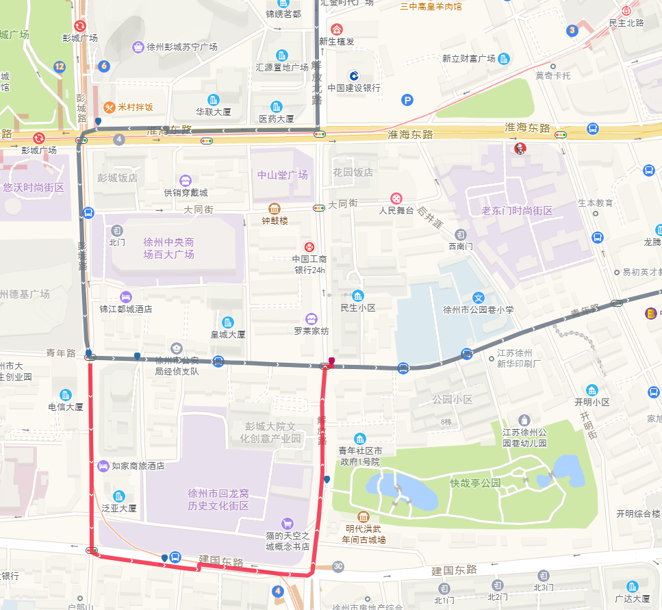 因青年路雨污分流工程施工需要,工程施工期间对青年路(解放路至彭城路)实施交通管制,已不具备公交车通行条件。从2023年3月15日起,临时调整公交线路绕行如下: