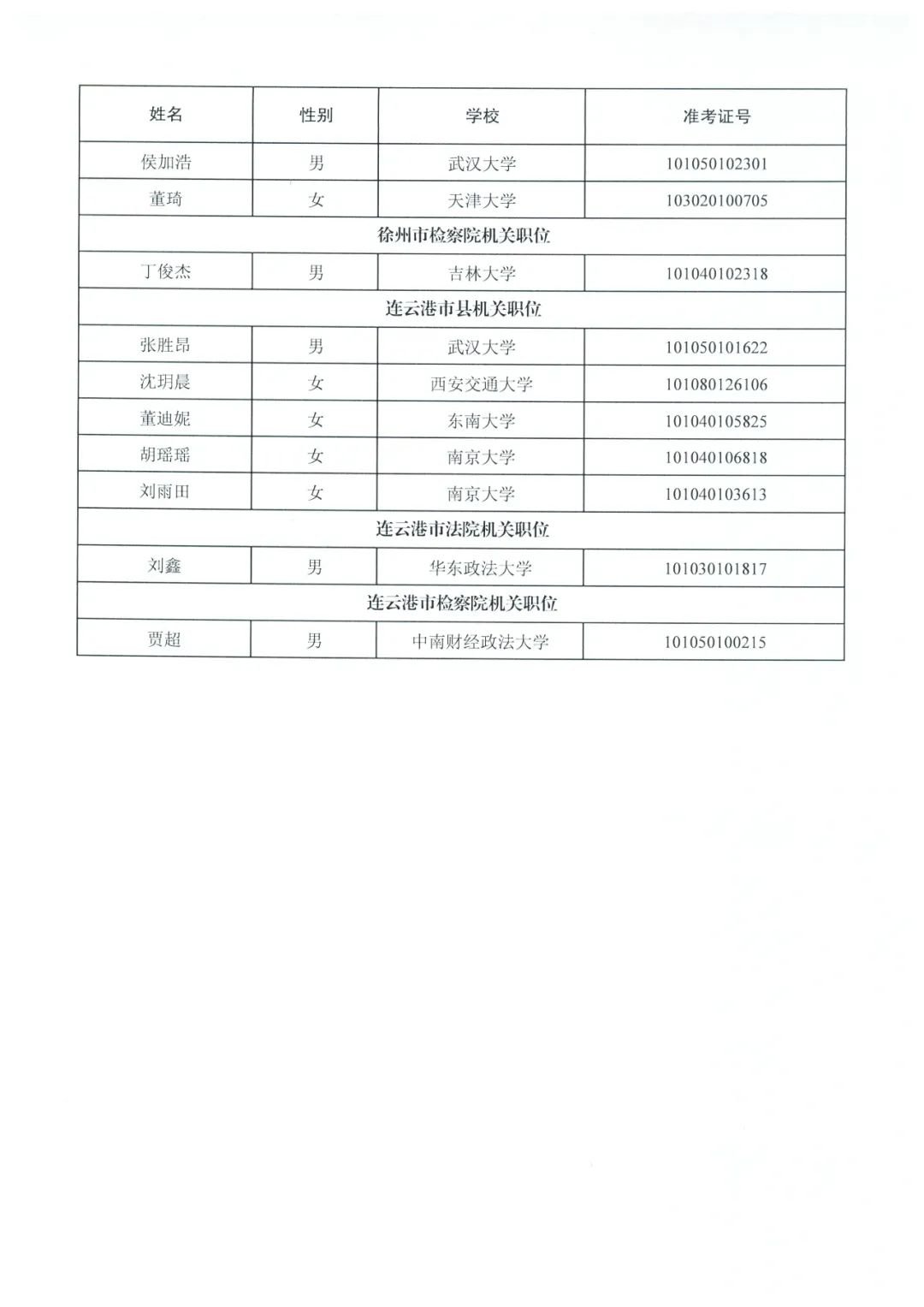拟录用人选递补名单公示