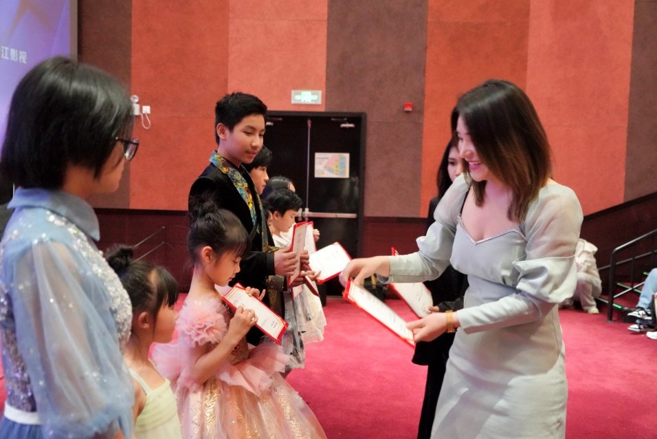 熊诗琪为小演员颁发证书。