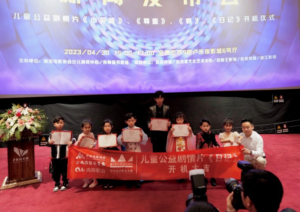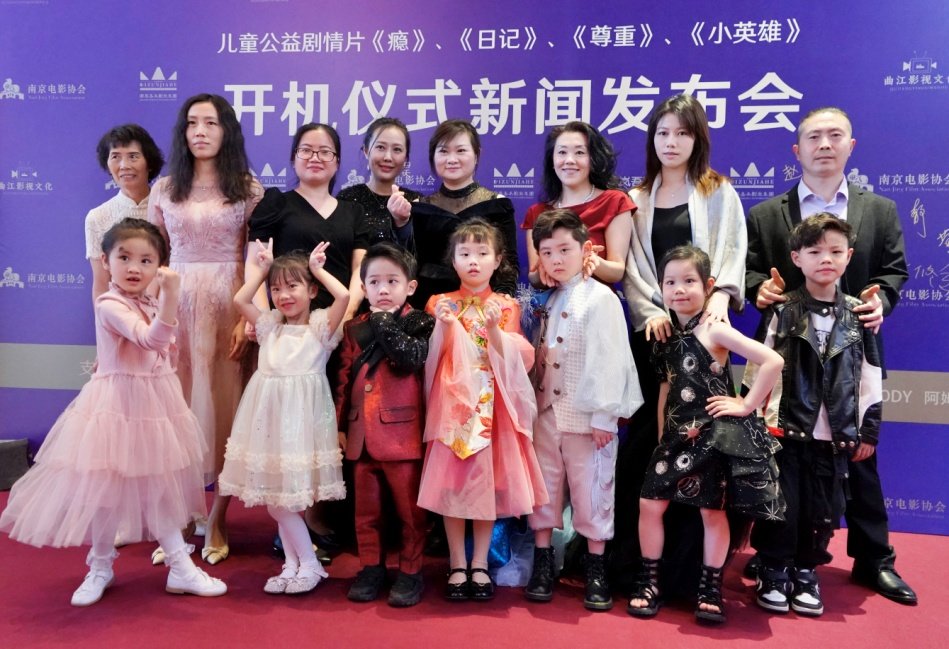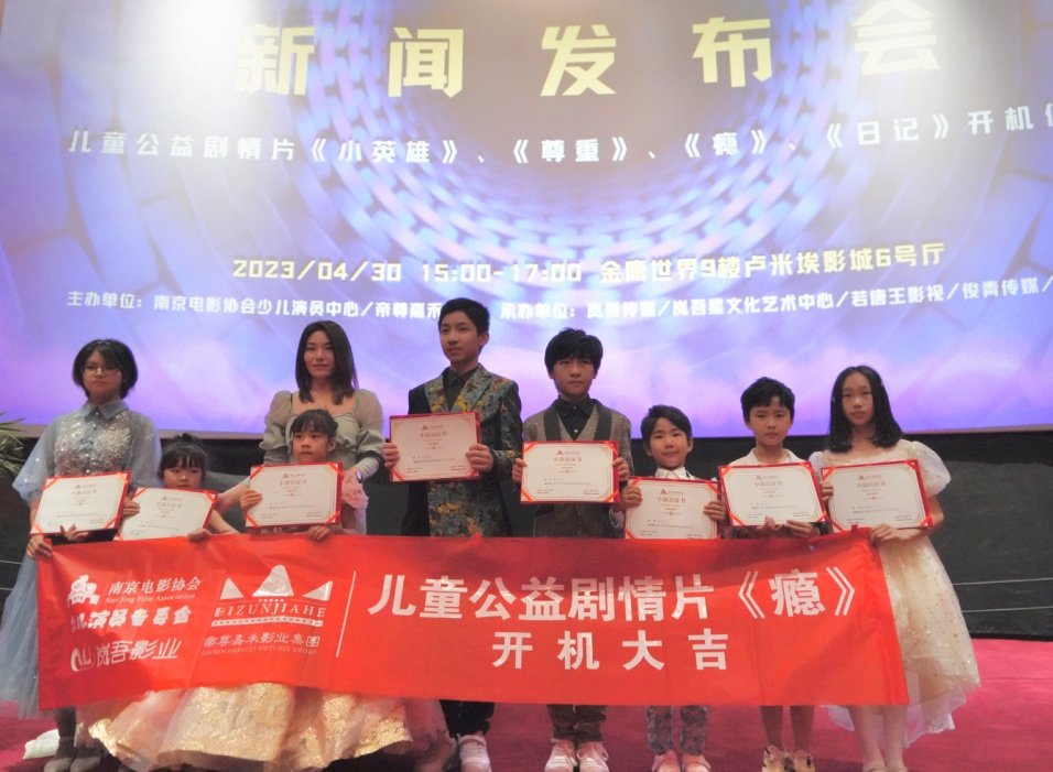 32位小小少年走进公益儿童电影创作,踏上信仰成长之旅,这个场景出现在2023年4月30日的南京金鹰世界卢米埃影城。南京电影协会少儿演员专委会筹拍的公益儿童剧情片《瘾》《日记》《尊重》《小英雄》,迎来开机仪式暨新闻发布会。小演员们在家长或老师的陪伴下走过红地毯,在主展板前打卡,显现出极大的创作热情。
