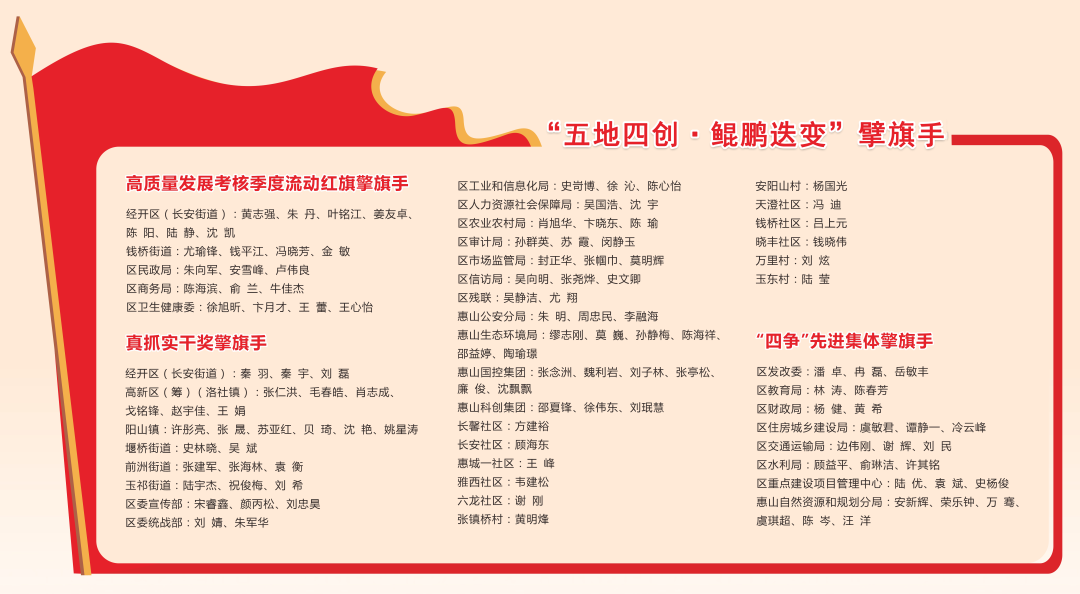 “成功属于每一位奋斗者,荣誉属于每一个惠山人。”吴建元代表区委、区人大、区政府、区政协,向获得表彰的先进地区、单位和个人表示热烈祝贺,向过去一年为全区高质量发展,敬业付出、勤勉奉献的干部群众表示衷心的感谢、致以崇高的敬意。