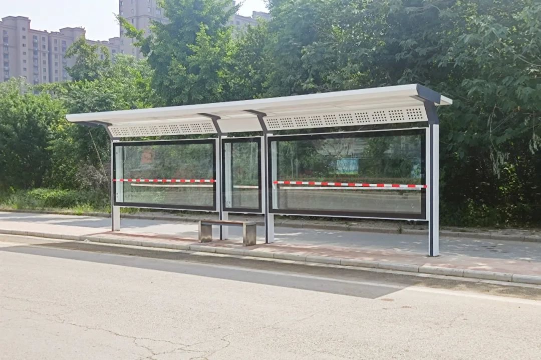 新建的公交站台按照高标准施工,站台候车亭长9米,宽1.5米,高3米,主体采用镀锌钢材和铝型材的材质,灯箱视窗配合LED灯管,能达到很好的城市亮化效果,并配有座椅,村民以后在这些地方等车,更加舒适便利。