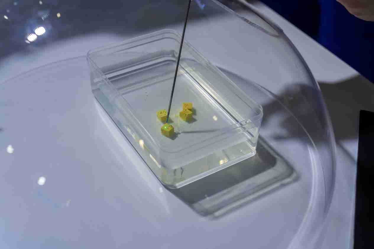 众里寻它千百度,那片星光就在5.1馆Q45。瑞柯恩展台精心准备了自由星™超脉冲光纤铥激光的实景模拟与互动体验设备,现场一波又一波参观者变身“手术体验官”,手持激光手柄,启动能量设备,强劲的激光能量就从纤细的光纤尖端释放出来,瞬间将结石样本崩碎成粉末,而结石则岿然不动。