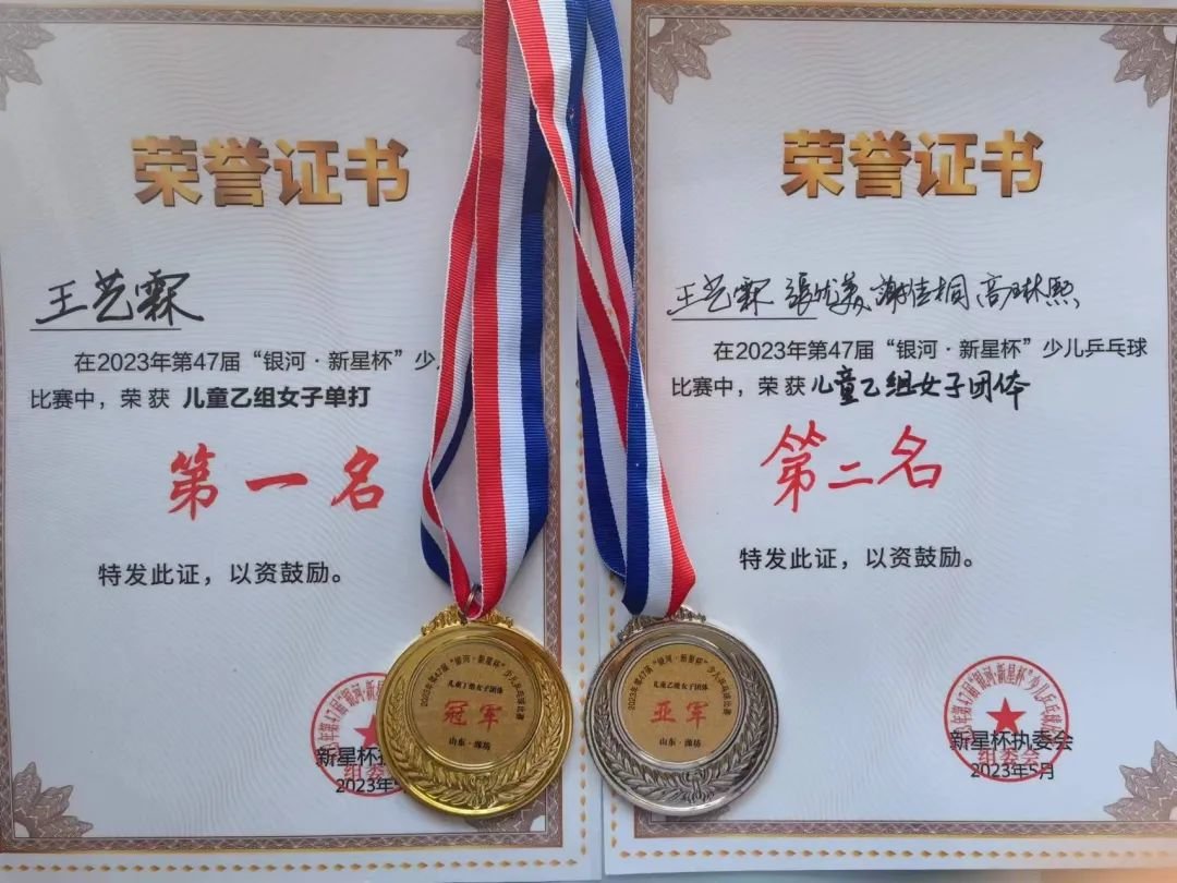 徐州市师范学校第一附属小学三(1)班学生王艺霖在第47届“银河·新星杯”少儿乒乓球比赛中荣获儿童乙组女子单打第一名、团体第二名的好成绩,并成功入选国少队培训。