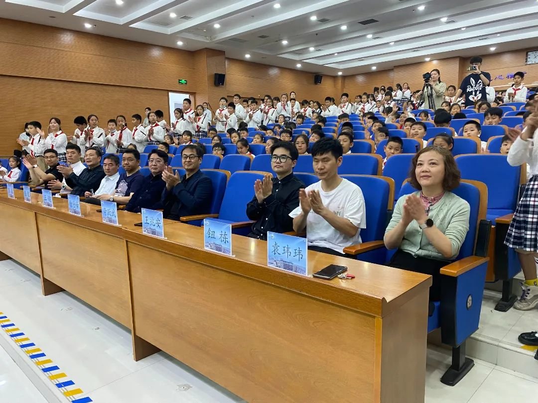 在汉景小学活动现场,汉景学子们为现场来宾带来千人竹笛齐奏《龙的传人》《蜗牛与黄鹂鸟》。