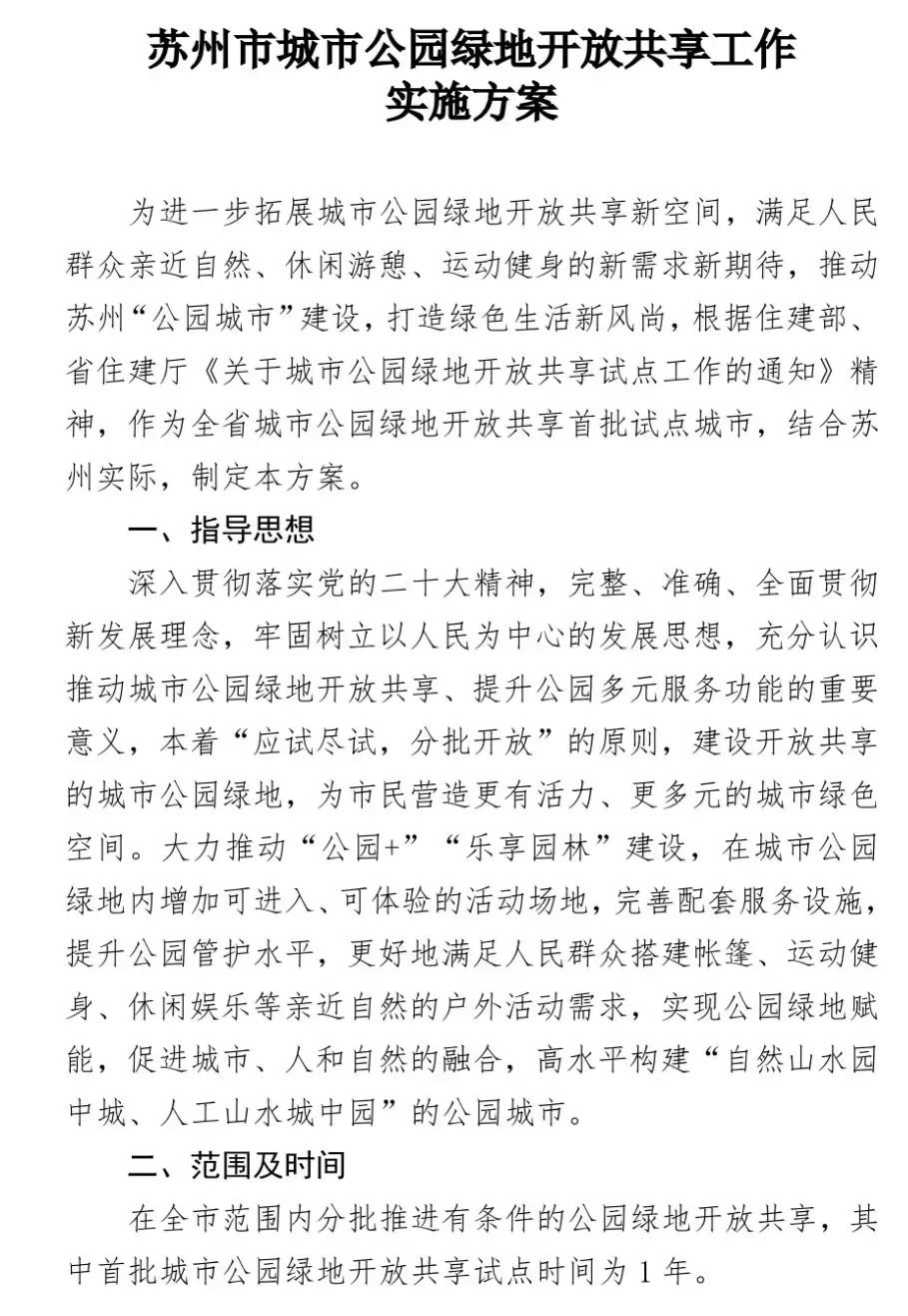 为进一步拓展城市公园绿地开放共享新空间,满足人民群众亲近自然、休闲游憩、运动健身的新需求新期待,近日,《苏州市城市公园绿地开放共享工作实施方案》正式印发啦。