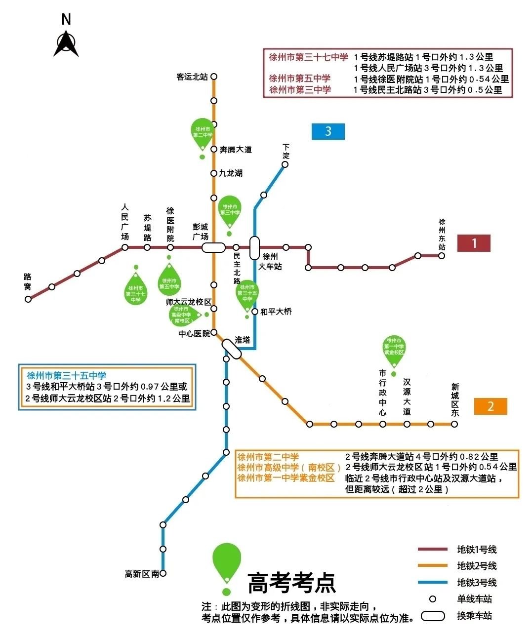 2023年徐州市高考市区考点共7处,涉及的公交线路具体如下: